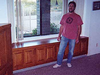 4 Unit Bay-Window Built-In #2 White Pine, Minwax stain, Poly finish, Euro Hinges, Middle 2 units have sliding drawers |